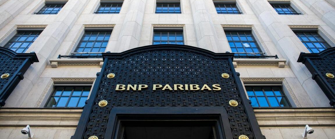 A sign above an entrance to the headquarters of BNP Paribas SA bank, in Paris, France, on Monday, Feb. 6, 2023. BNP Paribas kicks off earnings season for French banks, reporting quarterly numbers Tuesday before the market opens in Paris. Photographer: Nathan Laine/Bloomberg